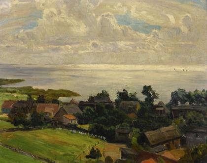HORST, Ernst (* 1875 Berlin). Evening mood with village at the coast .