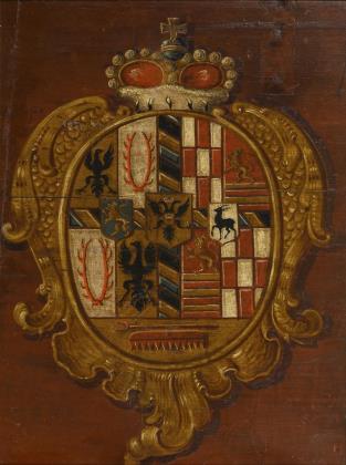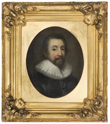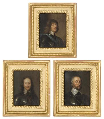 Charles I. (1600 Dunfermline - 1649 London, aus dem Haus Stuart, 1625-1649 König von England, Schottland und Irland). Thomas Howard, 21th Earl of Arundel (1585 Finchingfied - 1646 Padua, Diplomat, Kunstsammler). Algernon Percy, 10th Earl of Northumberland (1602 London - 1668 Dublin, Lord High Constable of England, Earl Marshal of England). Profilierte Goldrahmen
