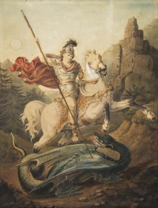 HISTORY PAINTER 19TH CENTURY. Saint George and the Dragon.