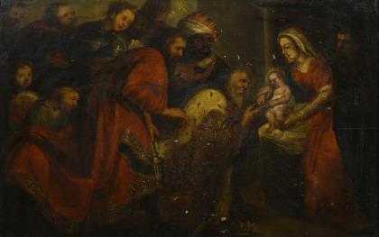 Old master 18th century: The Adoration of the Child Jesus by the three Magi.