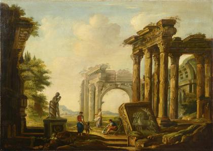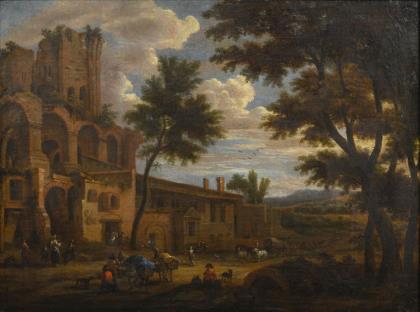 SCHOEVAERDTS, Matthijs (also Mathys) attributed (1665/67 probably Brussels - after 1702). Landscape with ruin and staffage.