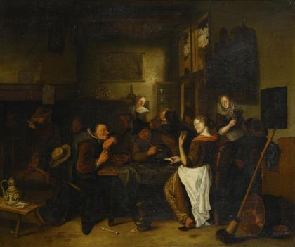 VALK, Hendrik de (c. 1674 Leeuwarden - 1709 ibid.). Genre scene in the inn.