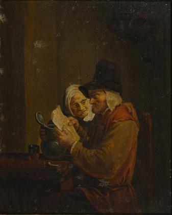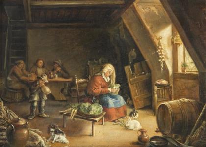 OLD MASTER COPYIST END OF 19TH CENTURY. Lively activity in the farmhouse parlor.