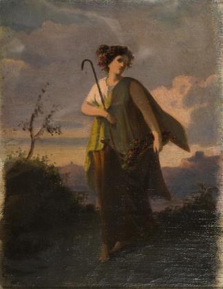 HECKEL, August von attributed (1824 Landshut - 1883 Munich). Shepherdess with staff and flower apron.