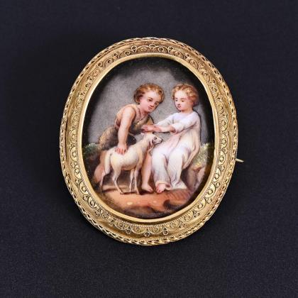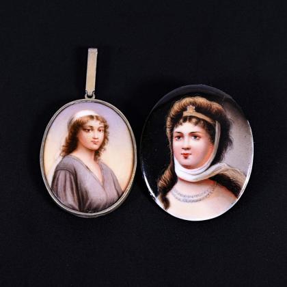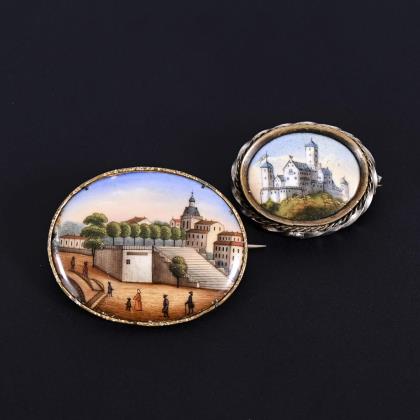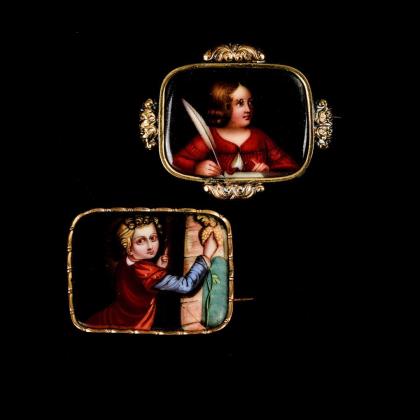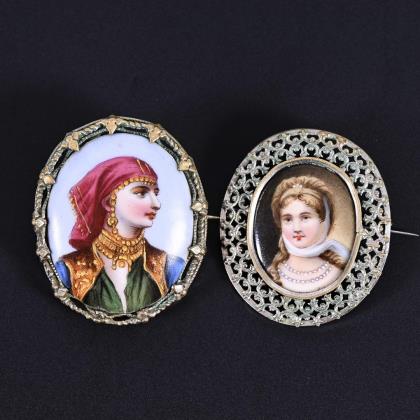 2 Biedermeier brooches with miniatures.