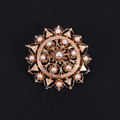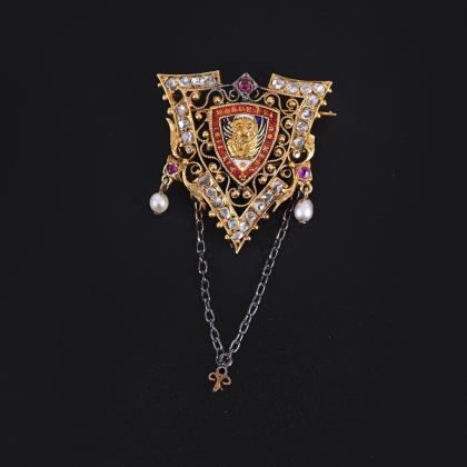 Venetian brooch with old cut diamonds, rubies and pearls late 19th c.