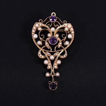 English pendant with amethyst and pearls, around 1910.