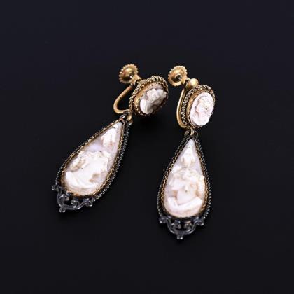 Italian pair of earrings with shell cameos, around 1900.