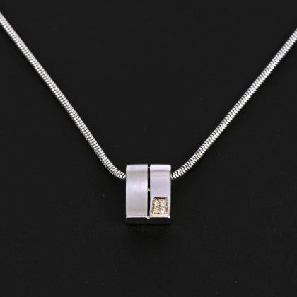 Diamond bead pendant, chain in original case.