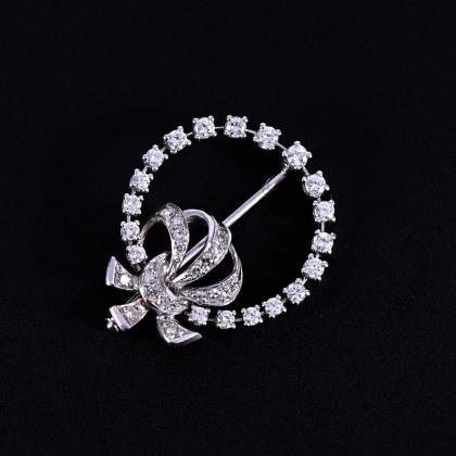 Art deco brooch with old cut diamond and diamond roses.