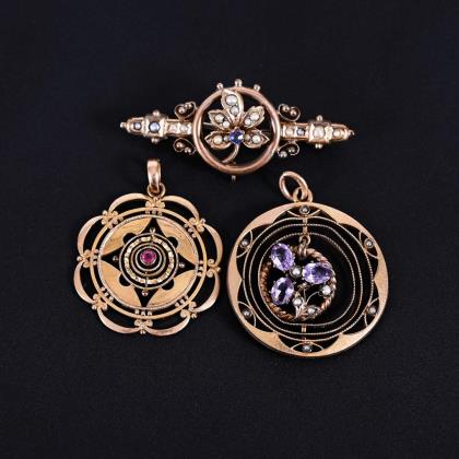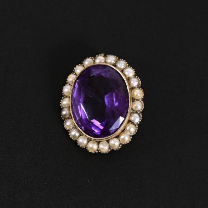 English brooch/pendant with amethyst and pearls around 1900.