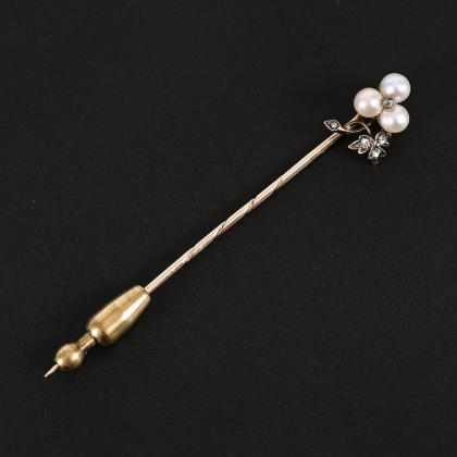 Tie pin with cultured pearls and diamond roses, around 1900.