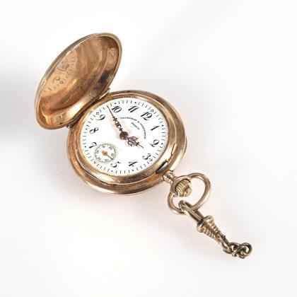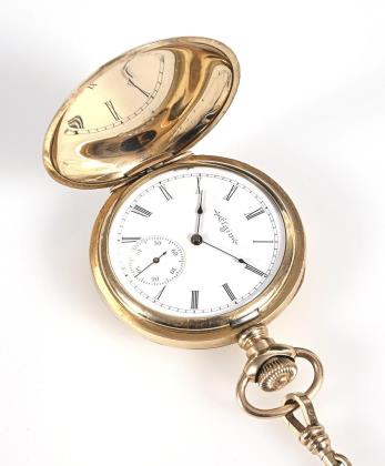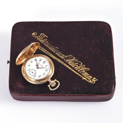 Elegant savonnette with chain in case... ELGIN International Watch Co.