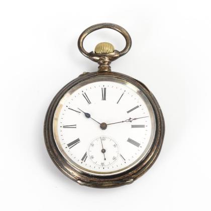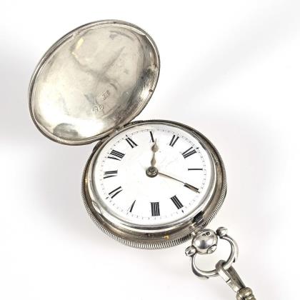Silver pocket watch and 2 porcelain Thuringian pocket watch holders.
