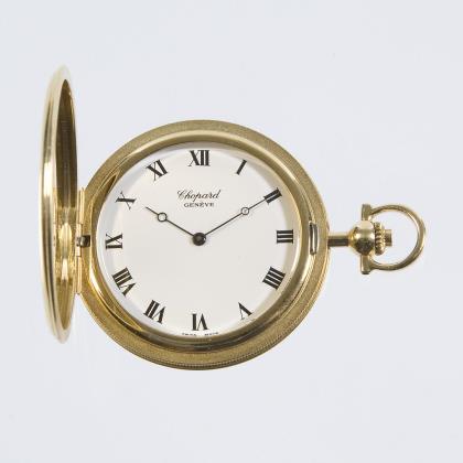 Kronenaufzug. Ankerwerk mit Genfer Streifen. 17 Steine. Weißes Zifferblatt, schwarze römische und arabische Zahlen, grazile Zeiger, kleine Sekunde. Garantiekarte, Chopard-Etui, Karton