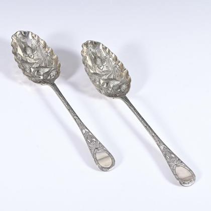 Pair of silver serving spoons. John & Henry Lias, London.