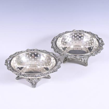 Oval silver bowl with breakthrough rim.