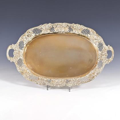 Oval silver tray with breakthrough rim. Christoph Widmann, Pforzheim.