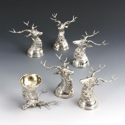 6 silver tumblers in the shape of a deer head. Court jeweler Carl Frey & Sons, Wroclaw.