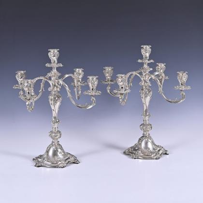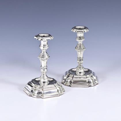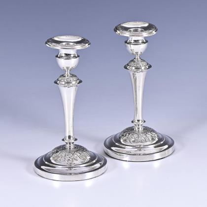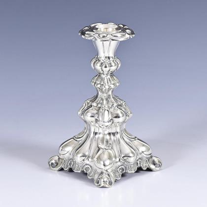 Pair of silver candlesticks in baroque style. Hugo Grün, Copenhagen.