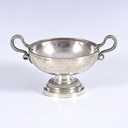 Wine tasting bowl with snake handles.