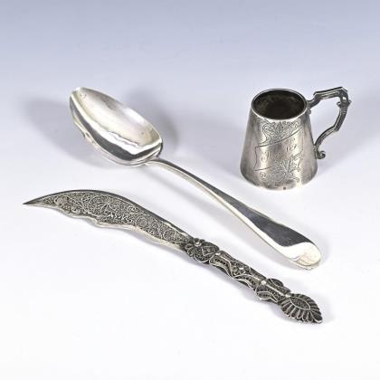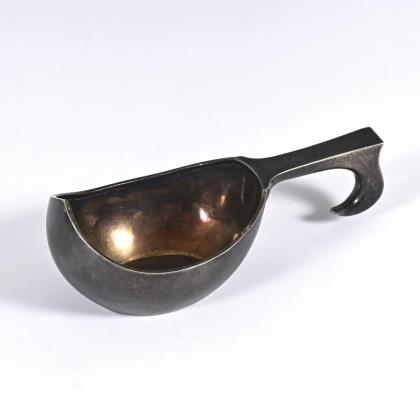 Heber mit sehr schön reliefiertem Blatt. Graviertes Monogramm und Datierung: "F.D. 1860". Gebrauchsspuren.