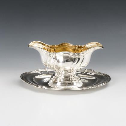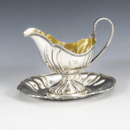 Heavy silver sauciere.