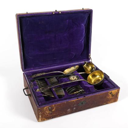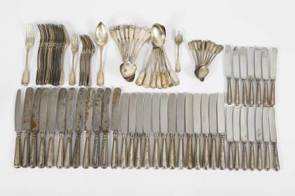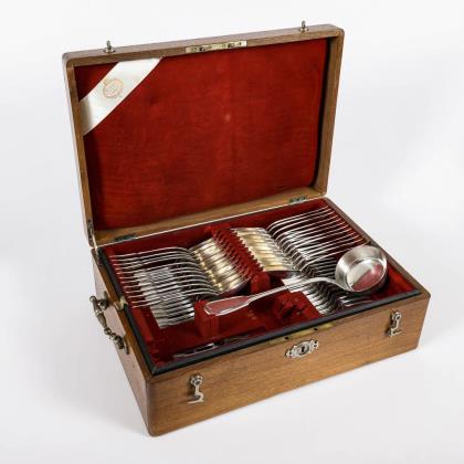 Heavy box with silver cutlery for 24 persons. Bruckmann & Söhne, Heilbronn.