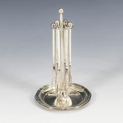 Silver set of 6 champagne whisks. Lutz & Weiss, Pforzheim.