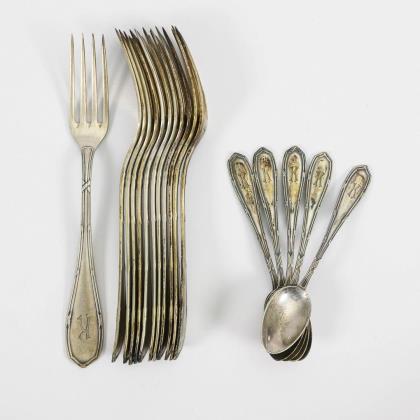 30-piece Art Nouveau silver cutlery set. Bruckmann & Söhne, Heilbronn.