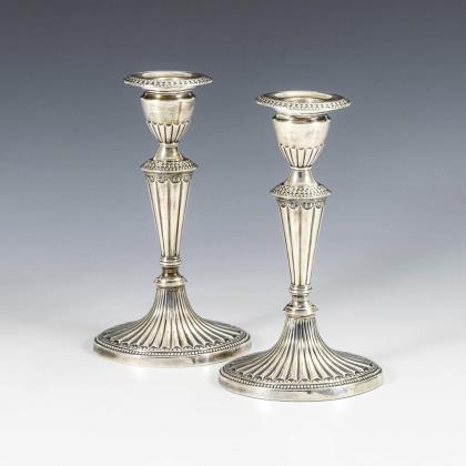 Pair of silver candlesticks. William Hutton & Sons, London.