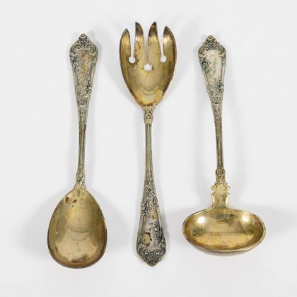 Silver art nouveau salad servers and 6 coffee spoons. Lutz & Weiss, Pforzheim.