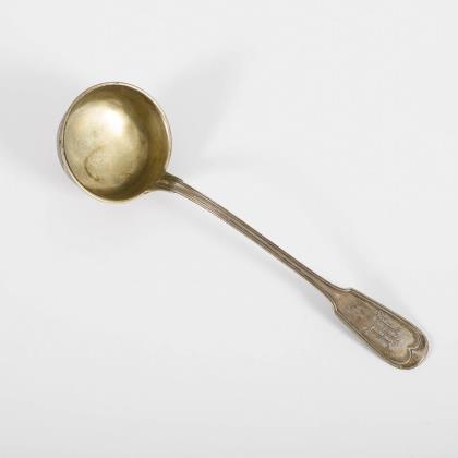 Large silver ladle in black casket. Bruckmann & Söhne, Heilbronn.
