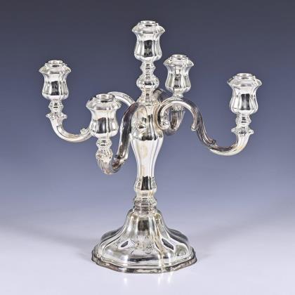 Großer 5-flammiger Silberleuchter. Gebrüder Deyhle, Schwäbisch Gmünd.