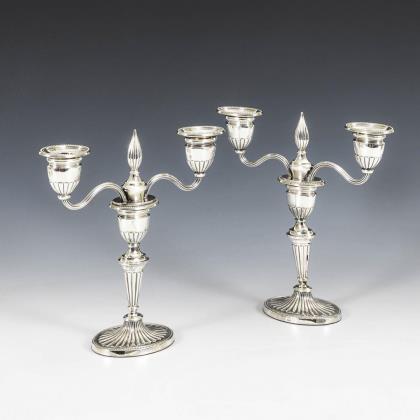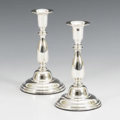 1-flammiges Leuchterpaar mit Balusterschaft. 1 Tülle mit Delle.