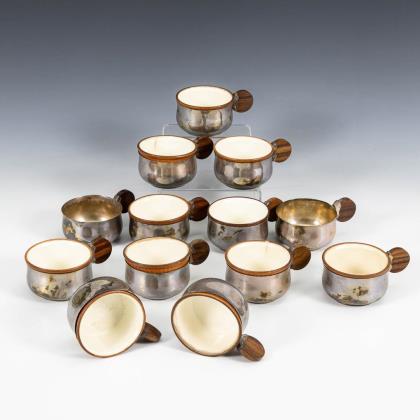 13 silver cups with ceramic inserts Rosenthal. Deyhle Brothers, Schwäbisch Gmünd.