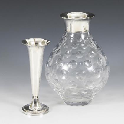 Silver vase and glass vase with silver rim. Hermann Bauer & Wilhelm Binder, Schwäbisch Gmünd.
