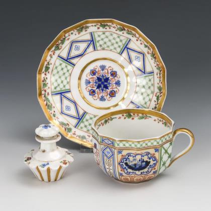 Biedermeier cup and flacon. Meissen.