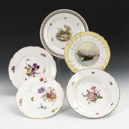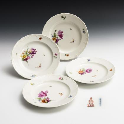 4 plates with floral and insect painting. KPM Berlin.