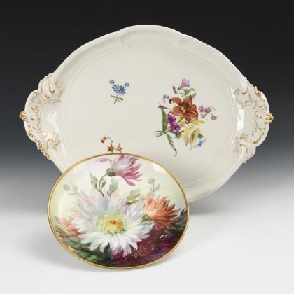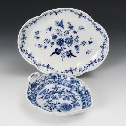 Onion pattern leaf bowl and quatrefoil bowl with blue painting. KPM Berlin.