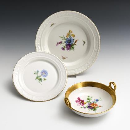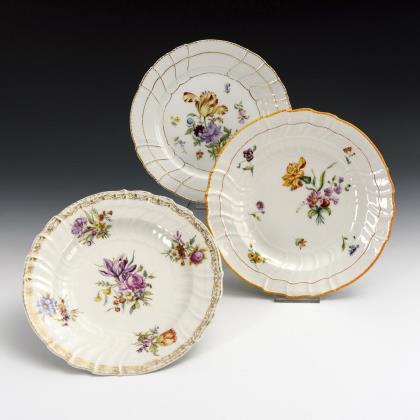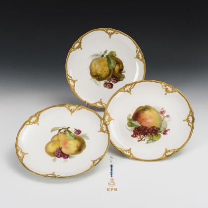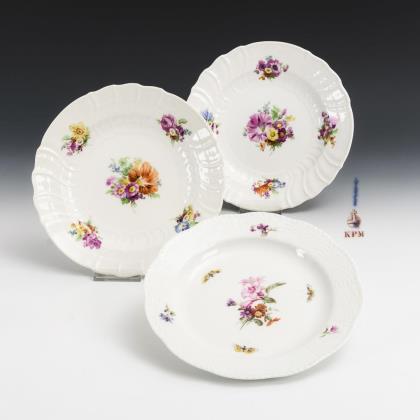 3 plates with floral painting. KPM Berlin.