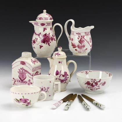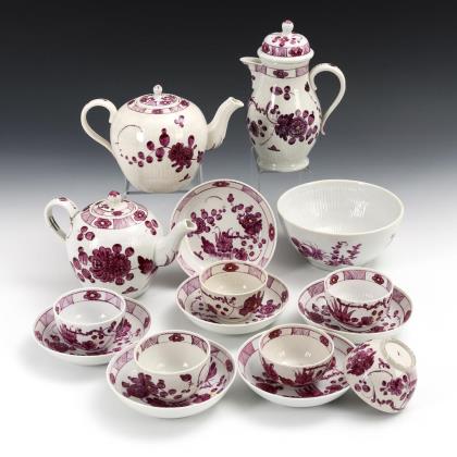 Mixed lot of Thuringian porcelain with purple painting.