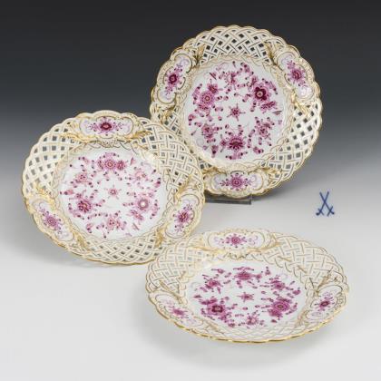 3 breakthrough bowls with floral painting. KPM Berlin.