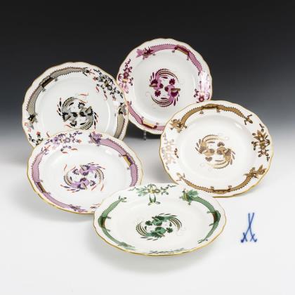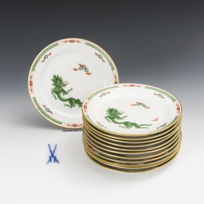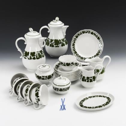 6 place settings with vine leaves decor. Meissen.