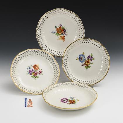4 breakthrough bowls with floral painting. KPM Berlin.