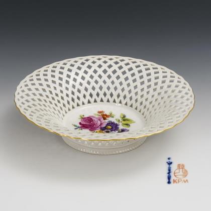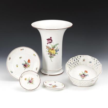 Vase, breakthrough bowl and 3 plates with floral painting. Nymphenburg.