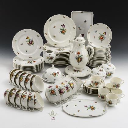 41 Teile. Modell "Antikzierat". 2 Kaffeekannen (H 23,5 cm), 2 Milchkännchen, 1 Zuckerdose, 12 Tassen mit 12 Untertassen und 12 Frühstücksteller.