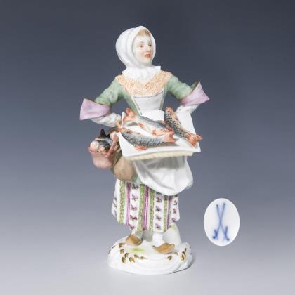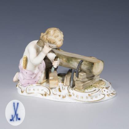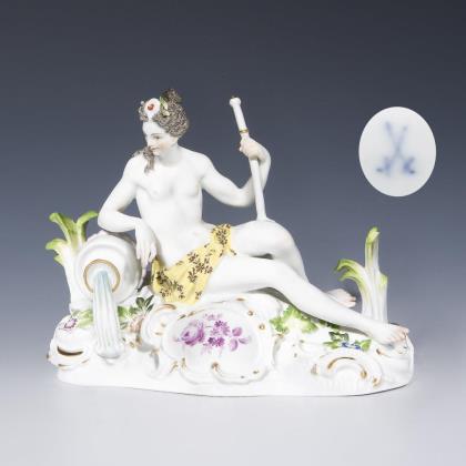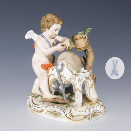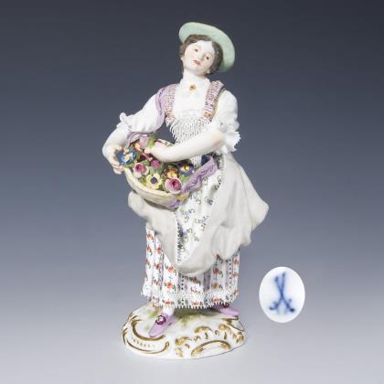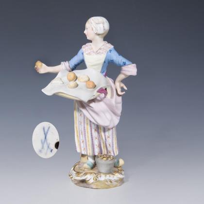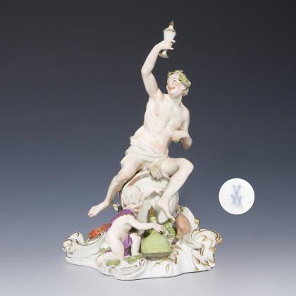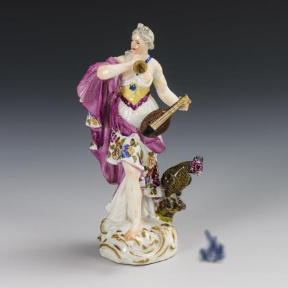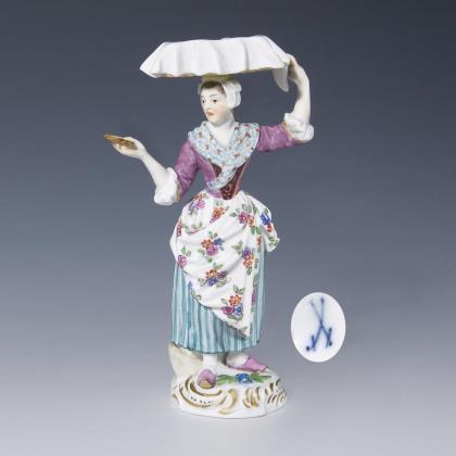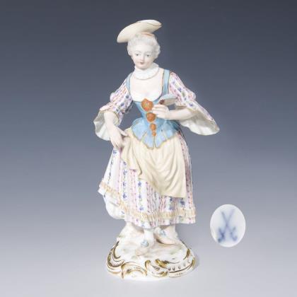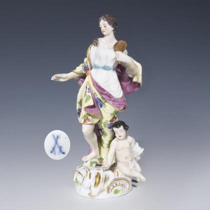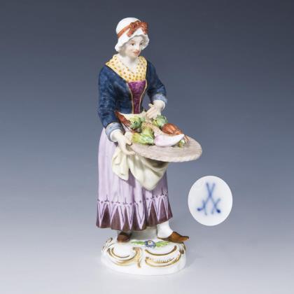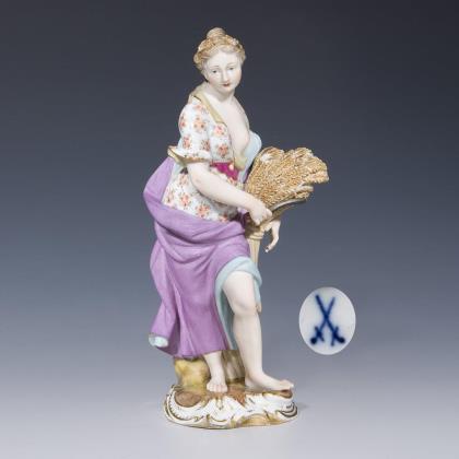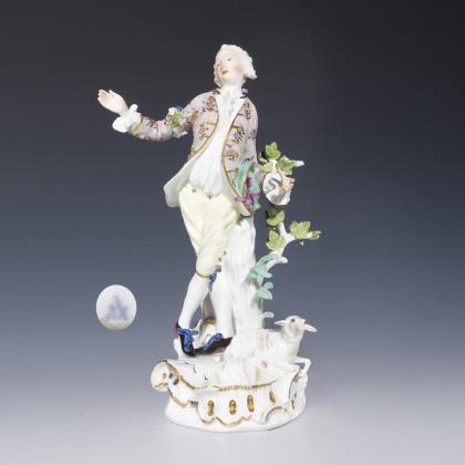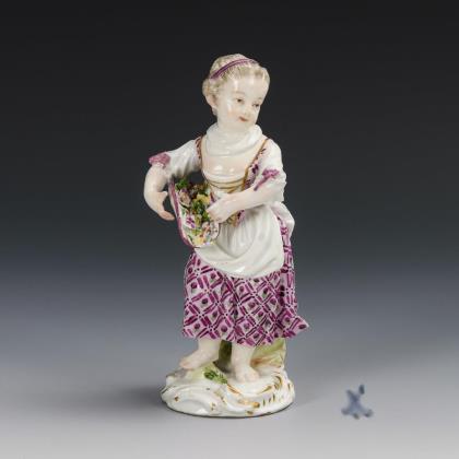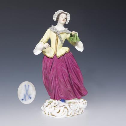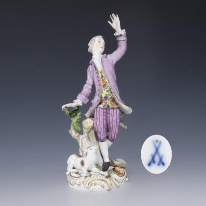 Modell von Johann Joachim Kaendler und Friedrich Elias Meyer 1755-1760. Aus einer Serie von 16 Figuren. Farbig bemalt, gold staffiert. Ritzmarke, Pressmarke, Malermarke, Schwertermarke