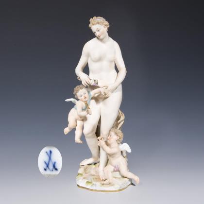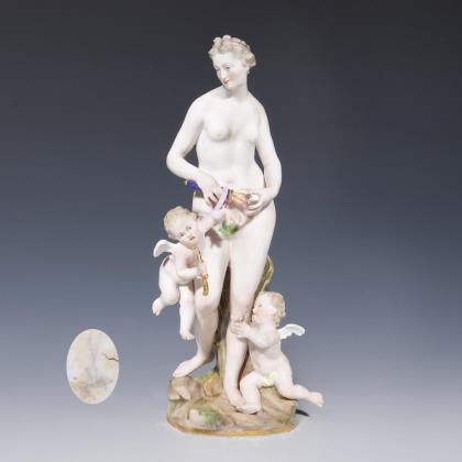 Modell von Michel Victor Acier 1777. Farbig bemalt, gold staffiert. Ritzmarke, Pressmarke, Malermarke, Schwertermarke