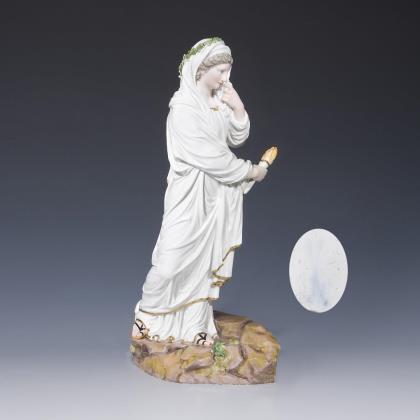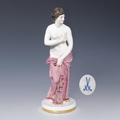 Modell von Johann Carl Schönheit 1772. Pendant zu Modell-Nr. D 78. Farbig bemalt, gold staffiert. Unglasierter Boden, Ritzmarke, Pressmarke, Malermarke, Schwertermarke